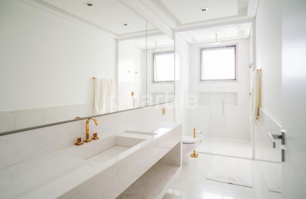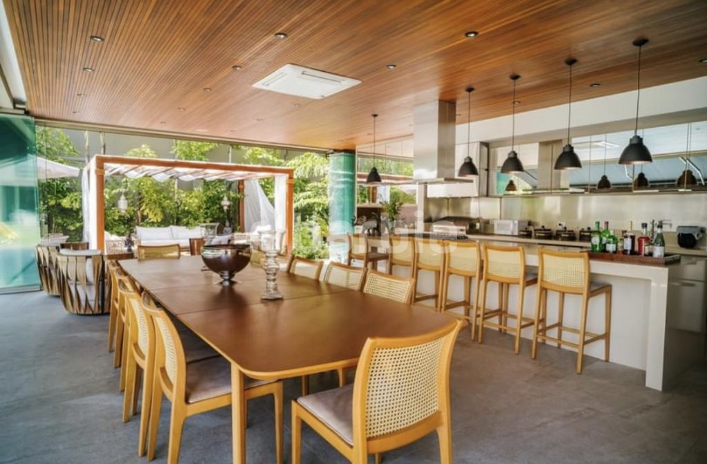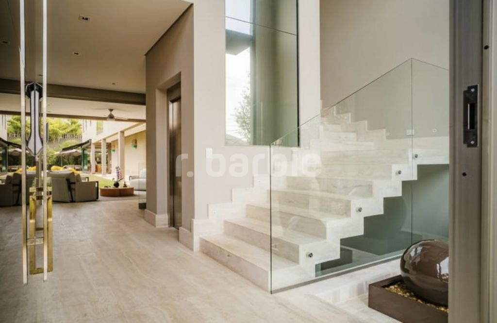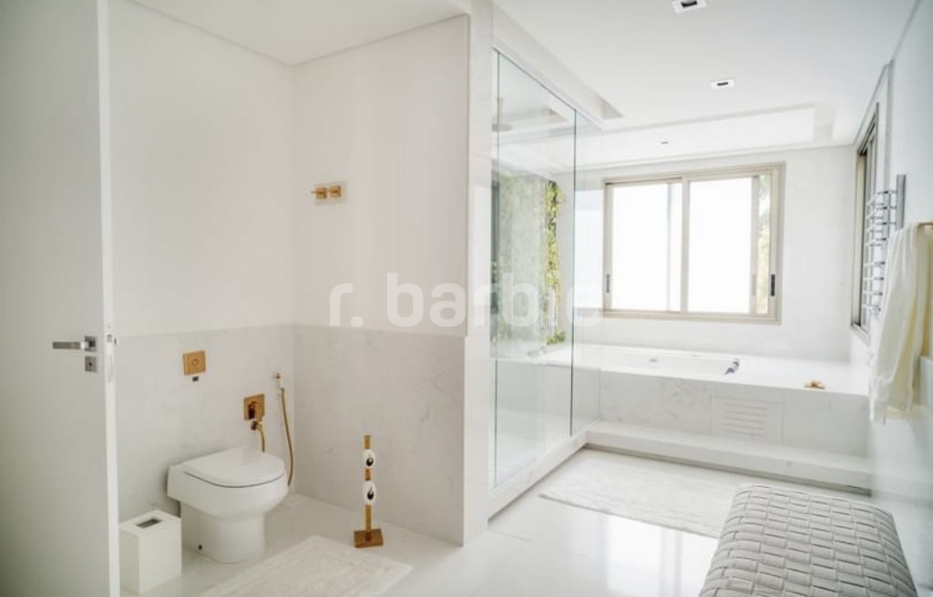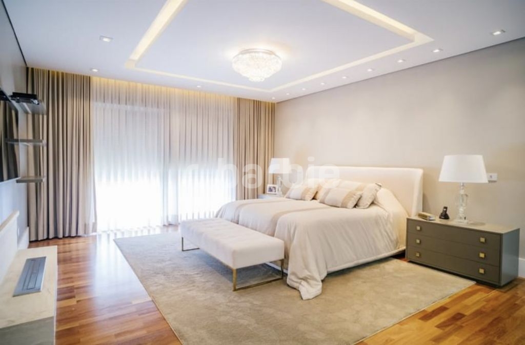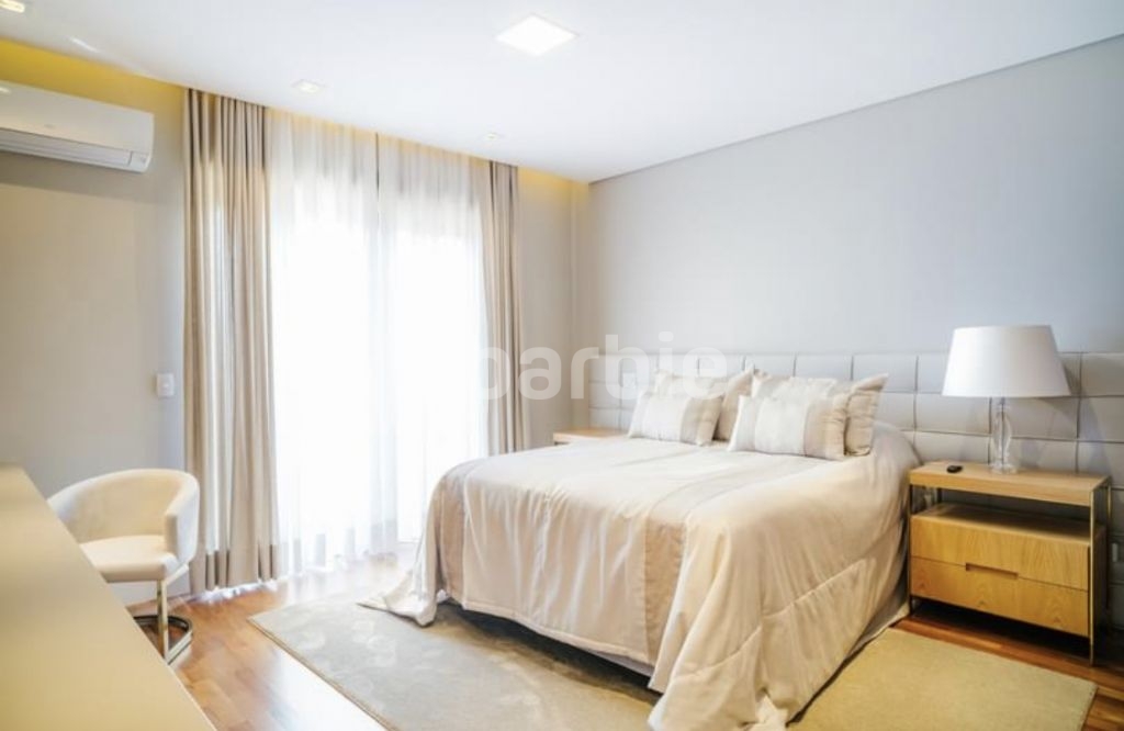 Exuberante mansão de 3 pavimentos com 1.165 metros de terreno e 1.180 metros de área construída, 5 suítes todas com closet, sendo a master com 2 banheiros Sr. e Sra, 2 closets, living para 3 ambientes, cozinha com ilha e despesa, escritório, ampla sala íntima, Spa com sauna e banheiro, piscina aquecida, área gourmet com lounge, gazebo, Home theater, 3 dormitórios de serviço, elevador, garagem coberta para 10 carros, 1 box de lavagem, aspiração central e infra para gerador a gás.