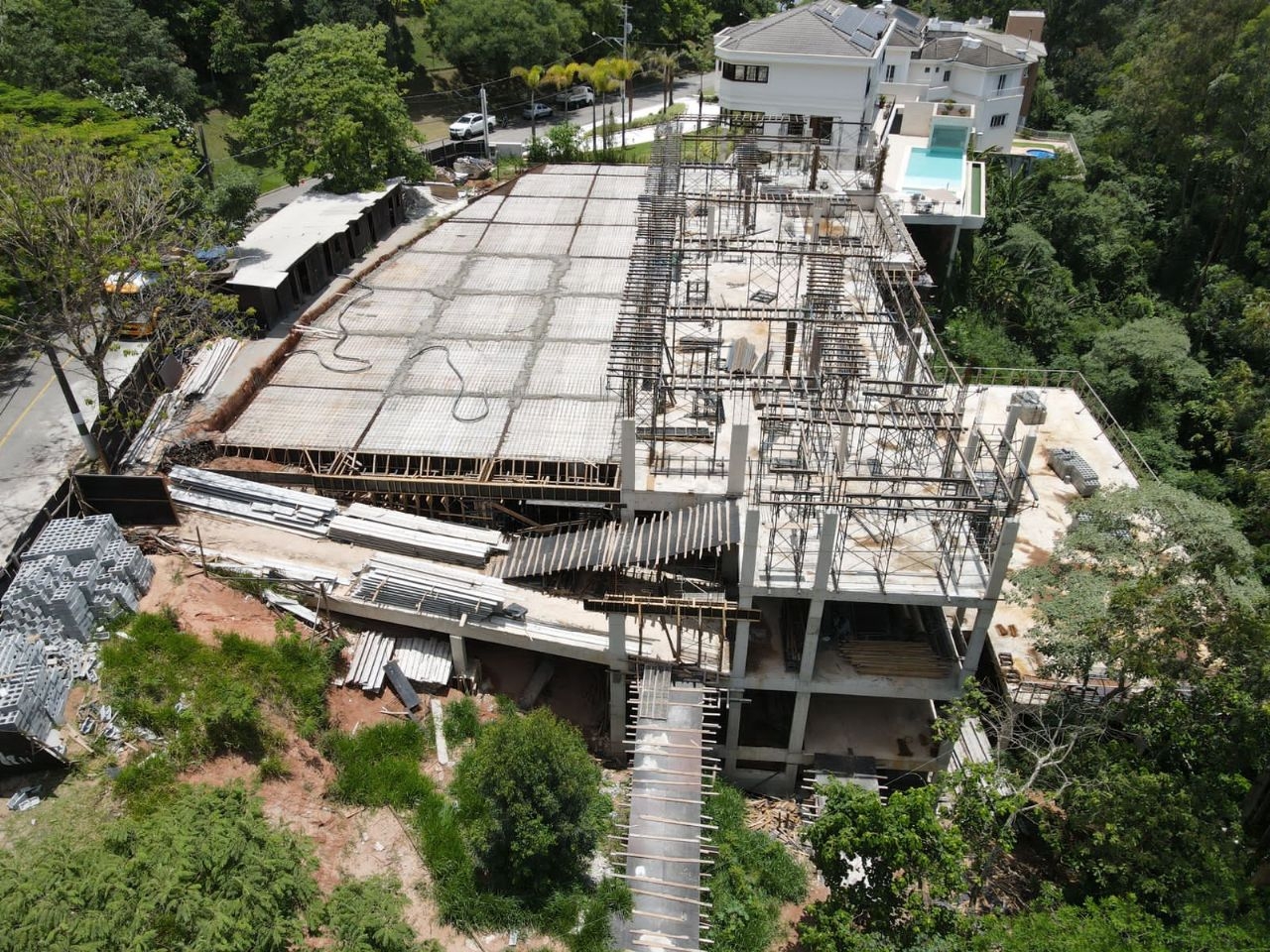 Exuberante Mansão cinematográfica em construção com 4.436,32 metros de terreno e 1.382,84 de construção com 8 dormitórios sendo 6 suítes amplas com varanda e vista para mata, living para 4 ambientes, cozinha em conceito aberto, escritório, adega, elevador, lavanderia, dispensa, área de bike, salão de festa com vista para mata, estúdio de música de dança e artes, academia, quadra poliesportiva, quadra de squash, área gourmet com churrasqueira, piscina adulto e infantil, deck de madeira com jardim de inverno e 15 vagas de garagem.