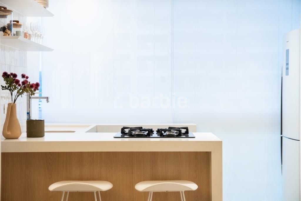 Apartamento cobertura duplex em Alphaville com 147 metros, sendo 2 dormitórios, 1 suíte, living para 2 ambientes, repleto de armários, ar condicionado, vista panorâmica, cozinha americana, 2 banheiros, área gourmet com quintal, churrasqueira e jacuzzi e 2 vagas de garagem.