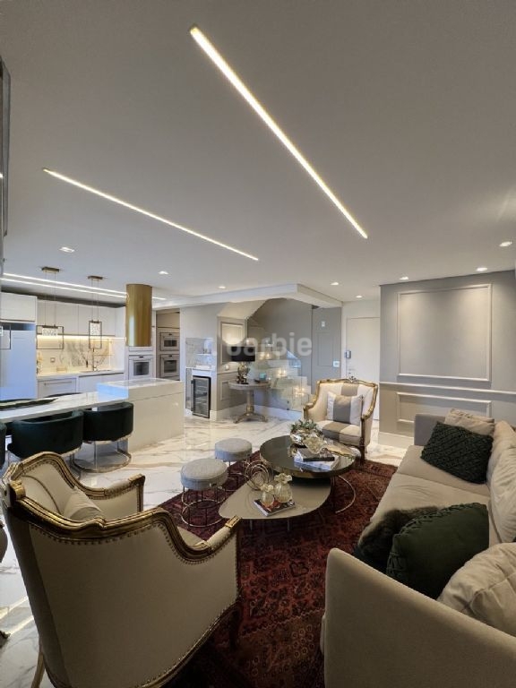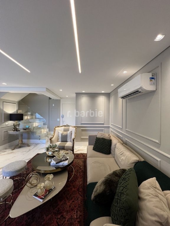 Belíssimo apartamento triplex com 169 metros, 2 suítes sendo a master com 60 metros, pé direito alto, closet e banheiro sr. e sra, acabamento de extremo bom gosto, living para 2 ambientes integrados, cozinha ampla com armários planejados, lavabo, escritório, varanda envidraçada integrada com a sala e 2 vagas de garagem.
