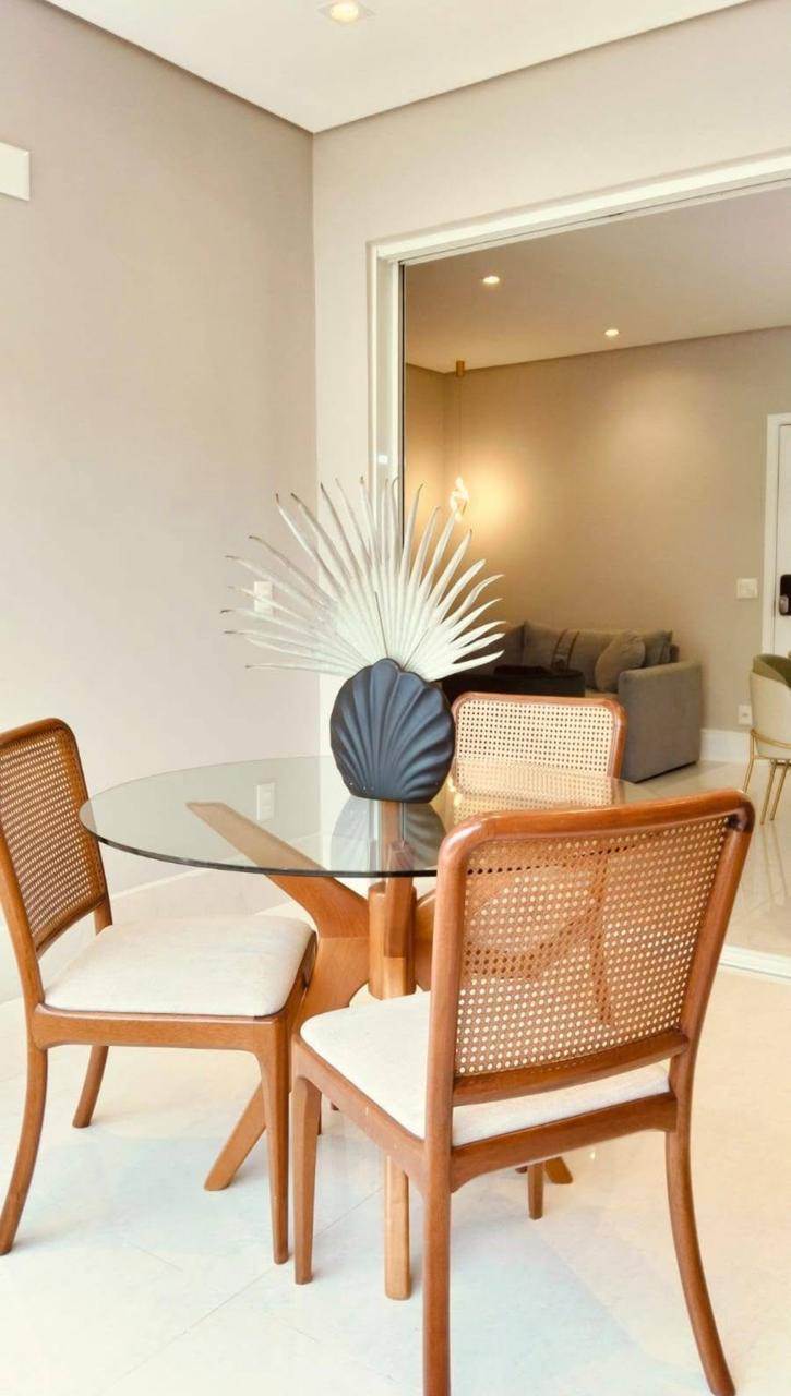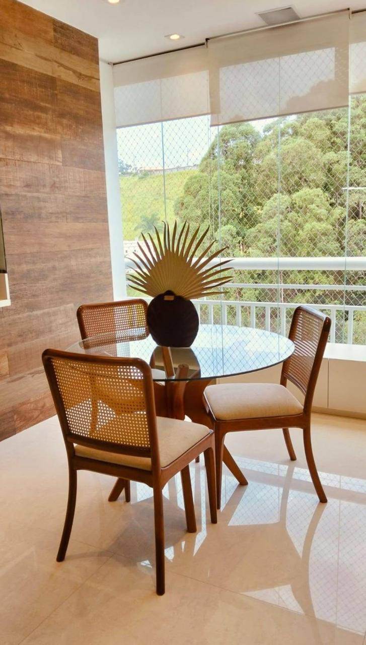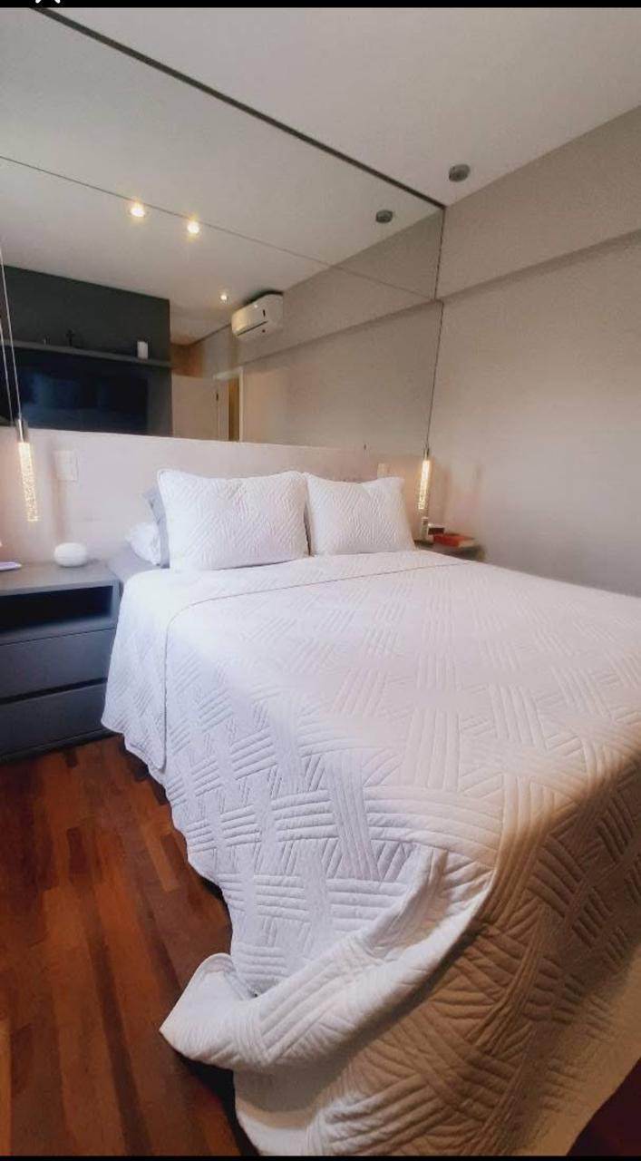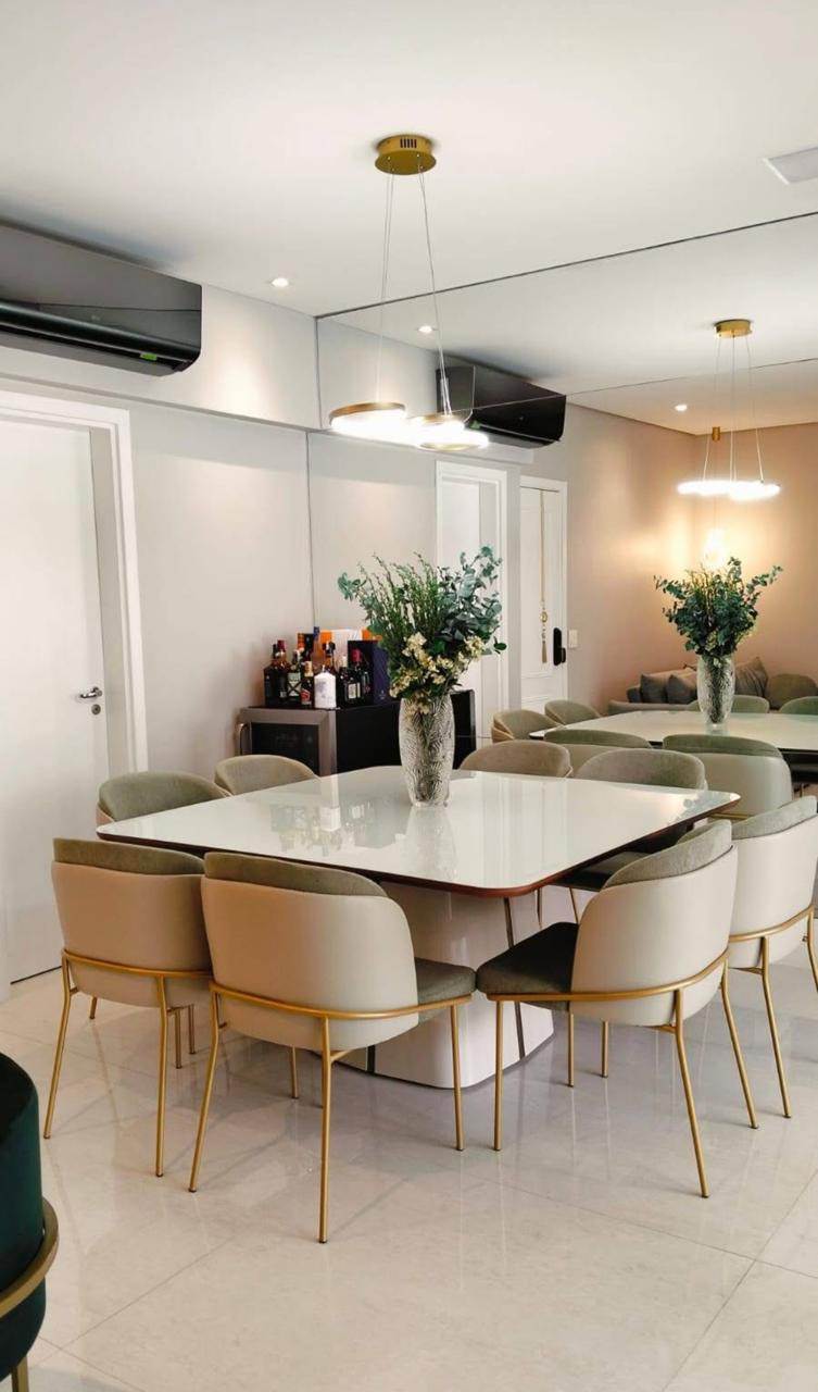 Apartamento mobiliado em Alphaville, 3 dormitórios sendo 1 suíte, 123 metros, living pra 3 ambientes, cozinha ampla com armários planejados e eletrodomésticos, varanda gourmet integrada com tela de proteção e envidraçada, andar ato, vista livre e 2 vagas de garagem.