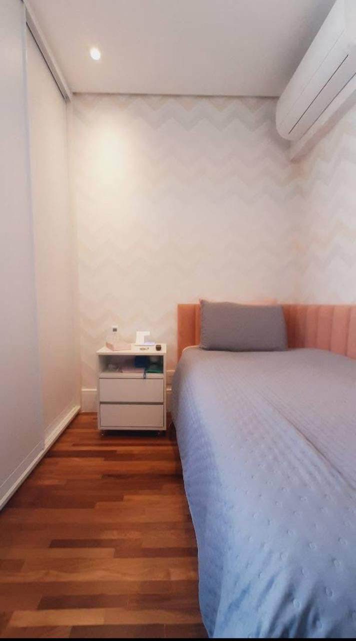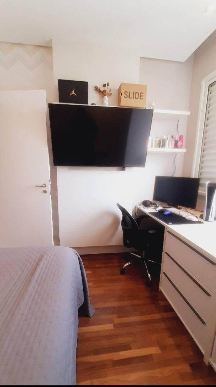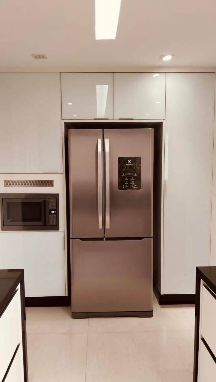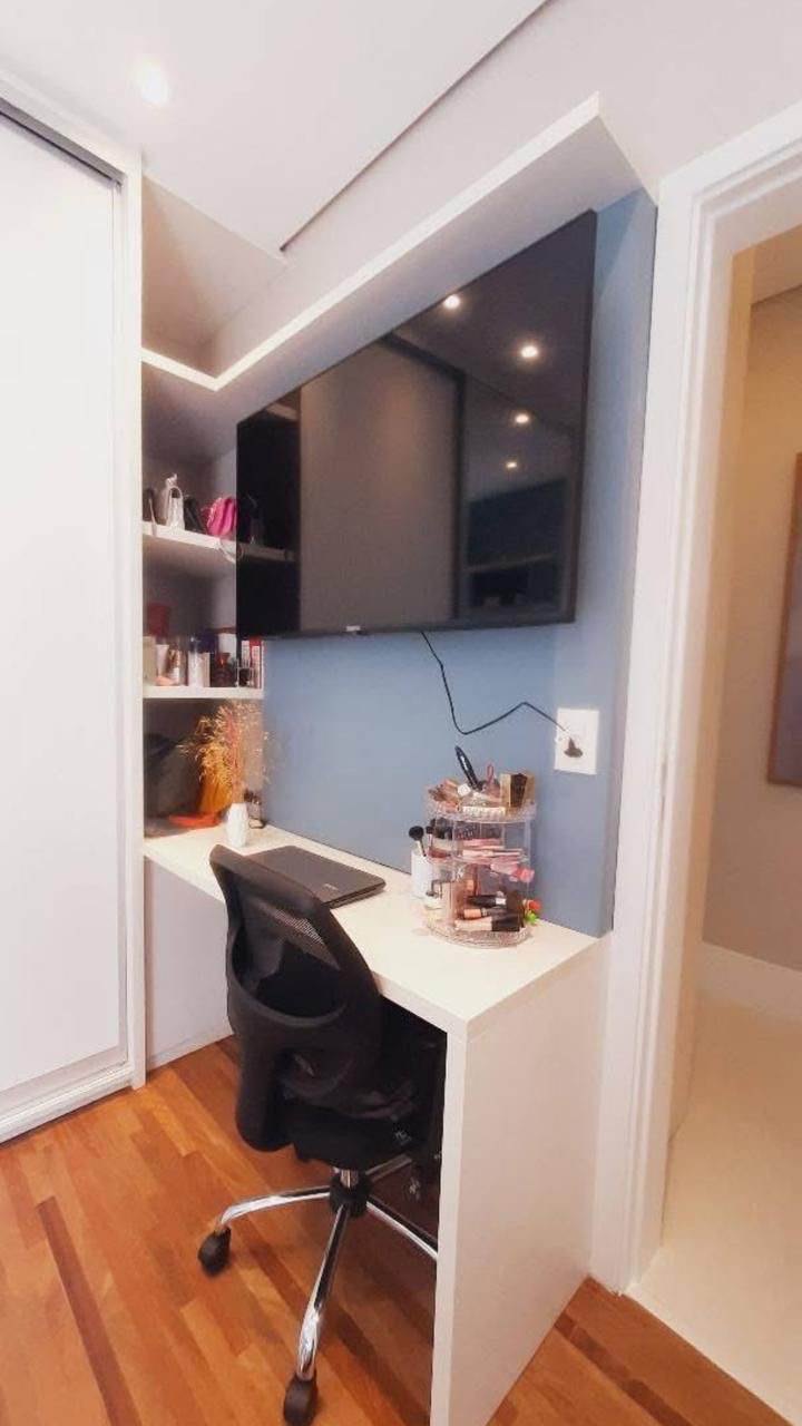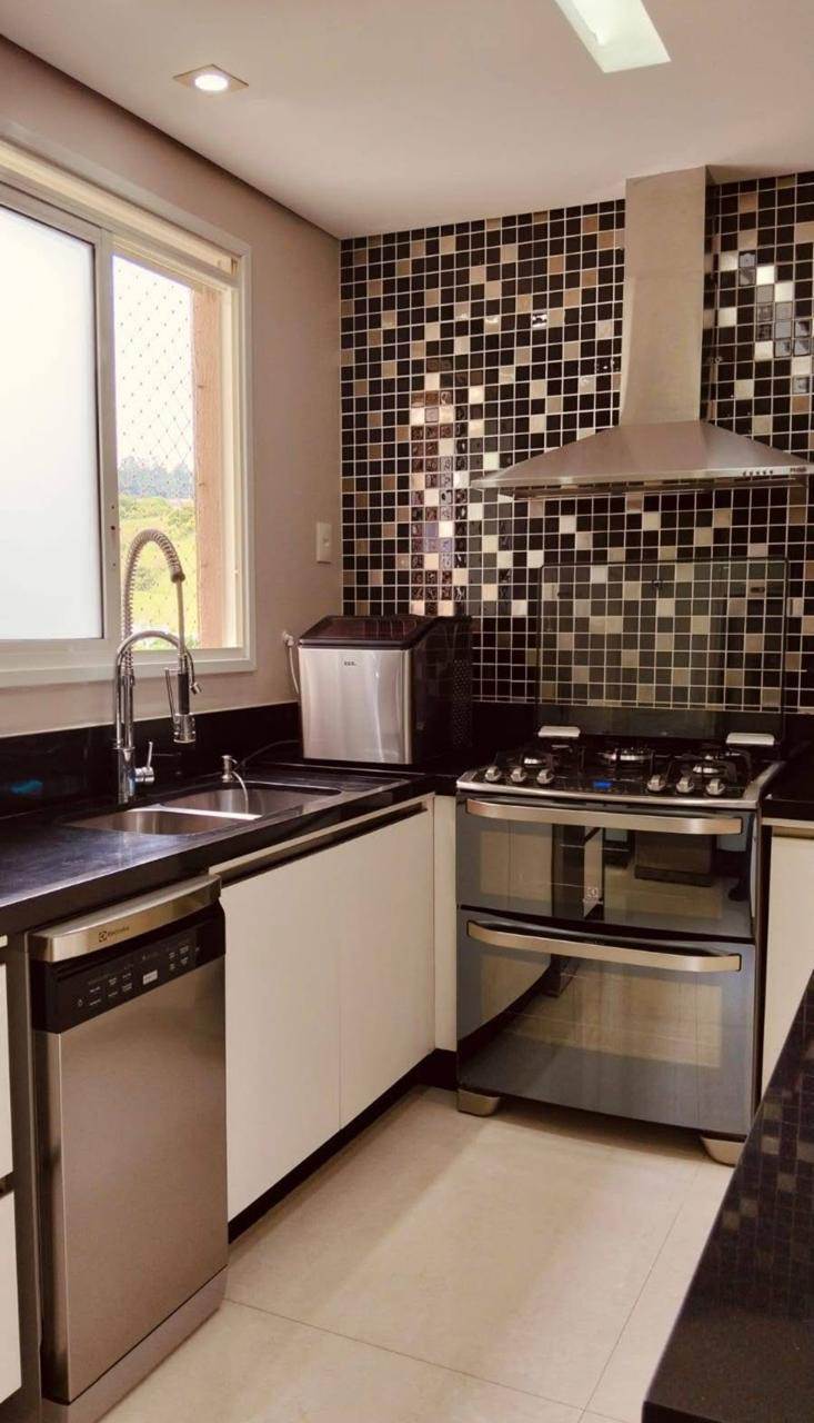 Apartamento mobiliado em Alphaville, 3 dormitórios sendo 1 suíte, 123 metros, living pra 3 ambientes, cozinha ampla com armários planejados e eletrodomésticos, varanda gourmet integrada com tela de proteção e envidraçada, andar ato, vista livre e 2 vagas de garagem.