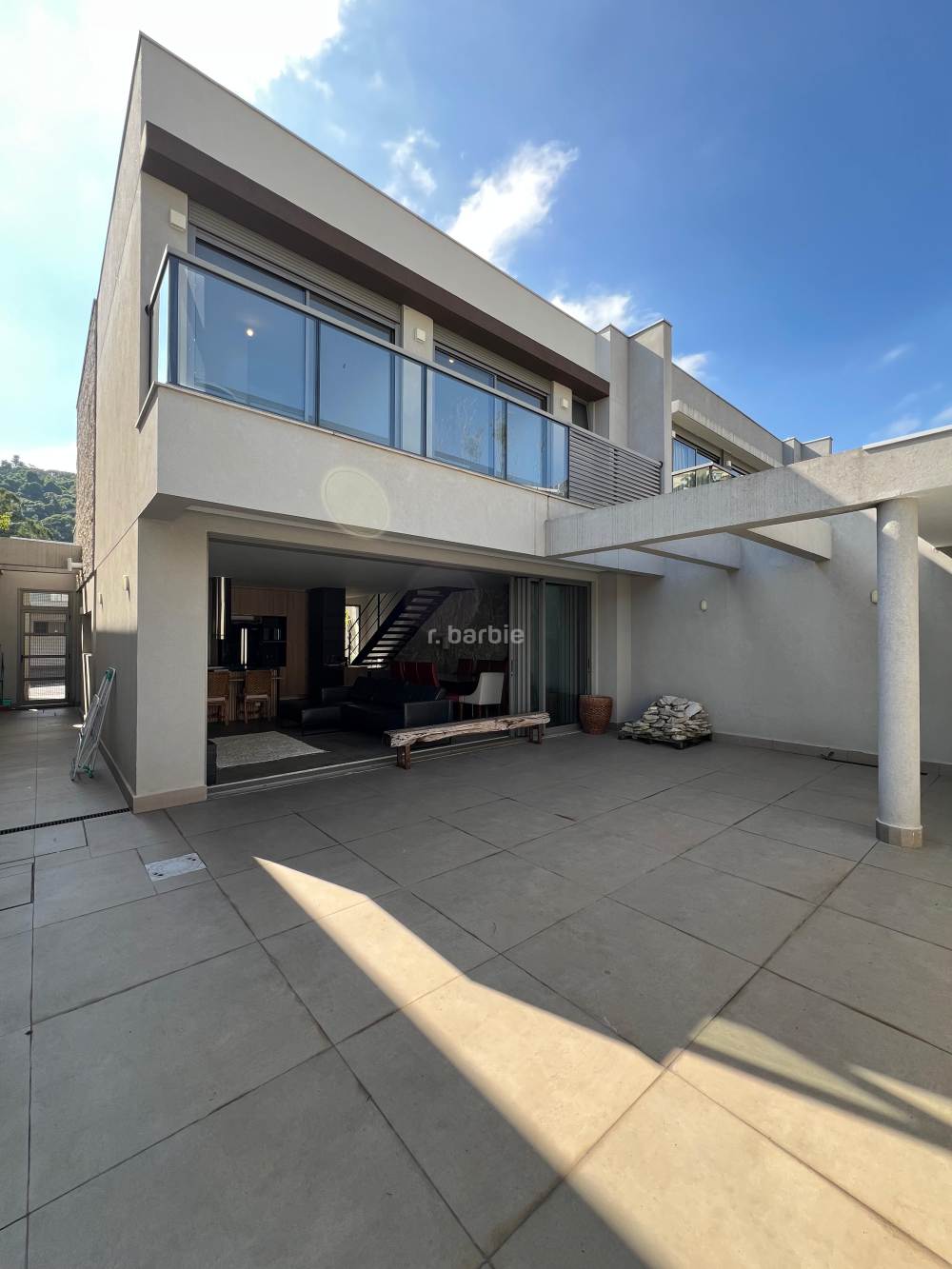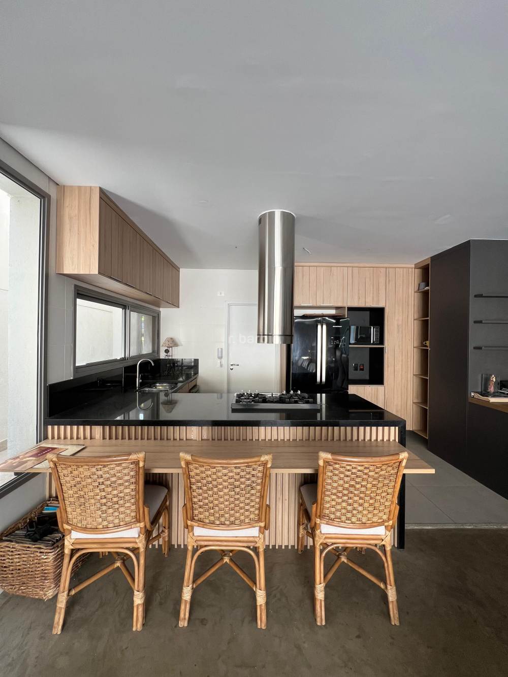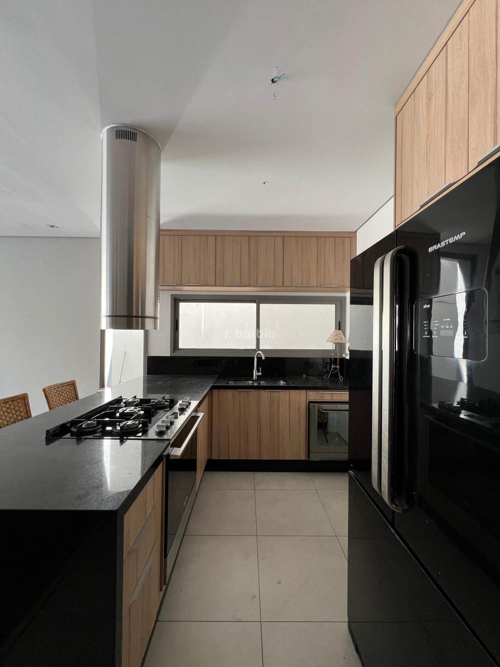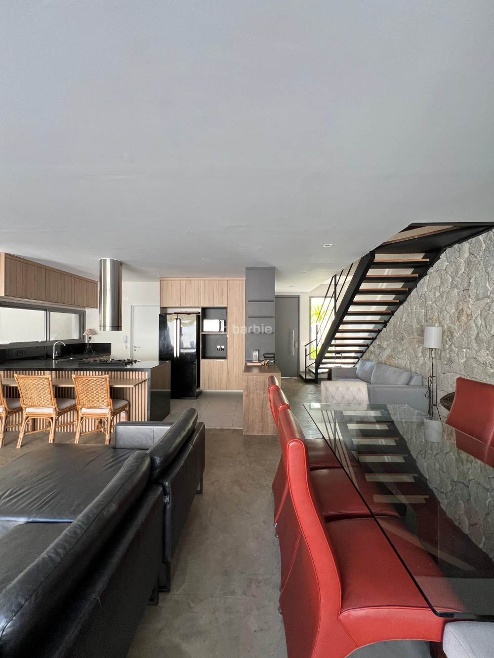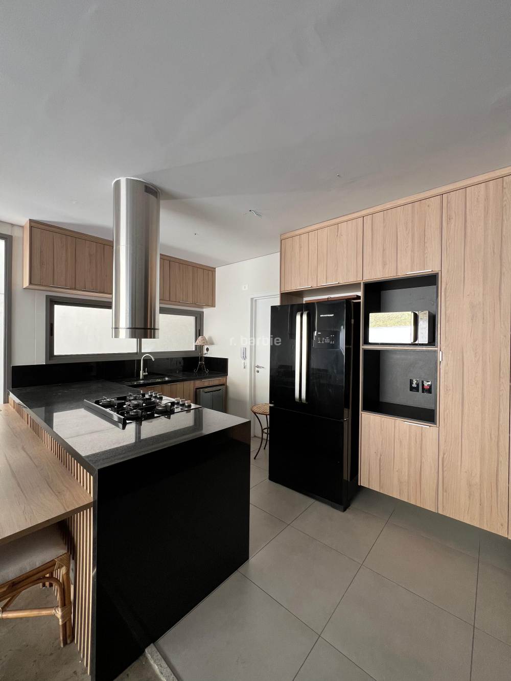 Casa recém construída mobiliada com 3 suítes em Alphaville, 200 metros, living para 2 ambientes, cozinha ampla com armários planejados e eletrodomésticos, lavanderia, 4 banheiros, infra para ar condicionado, persianas automatizadas e telas mosqueteiro em todas as janelas, área gourmet com churrasqueira, e garagem para 3 carros.