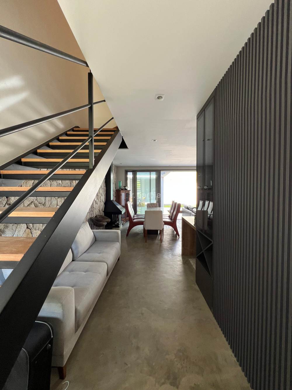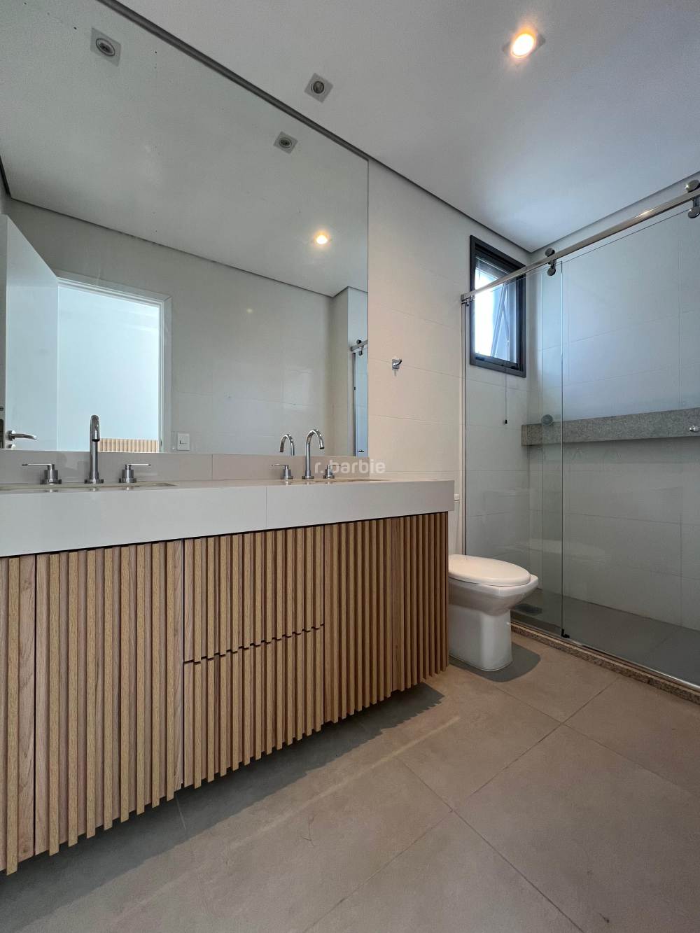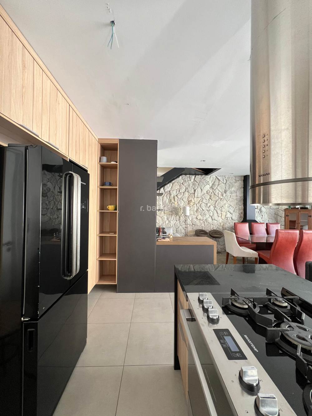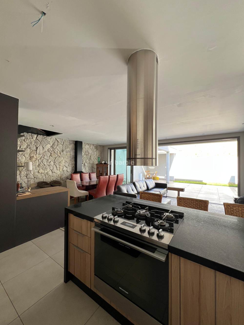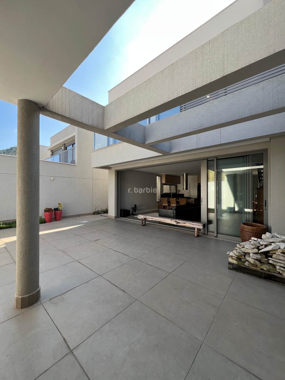 Casa recém construída mobiliada com 3 suítes em Alphaville, 200 metros, living para 2 ambientes, cozinha ampla com armários planejados e eletrodomésticos, lavanderia, 4 banheiros, infra para ar condicionado, persianas automatizadas e telas mosqueteiro em todas as janelas, área gourmet com churrasqueira, e garagem para 3 carros.
