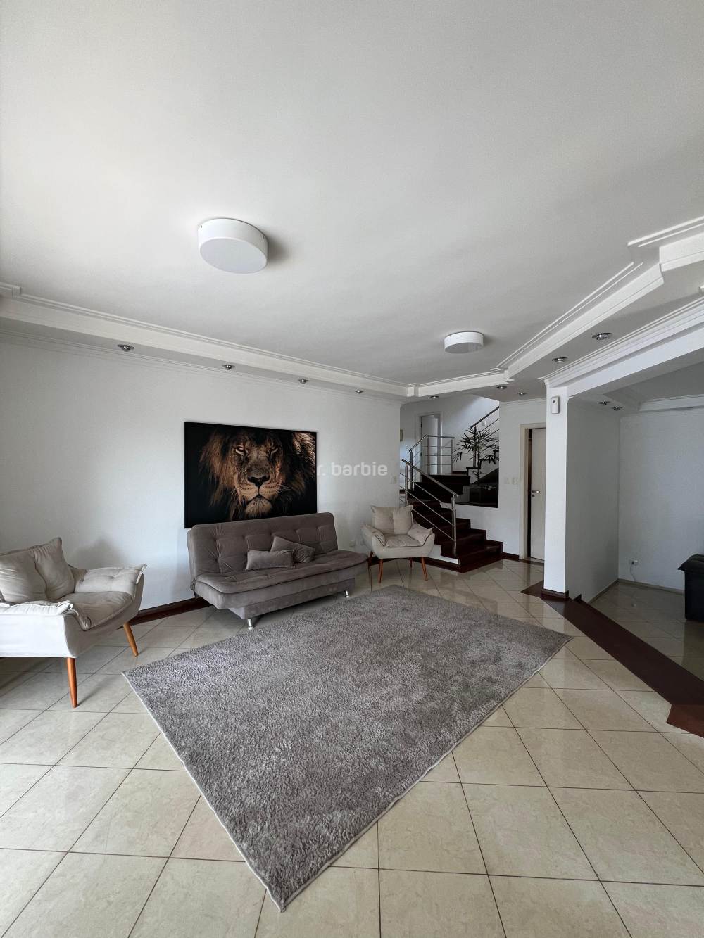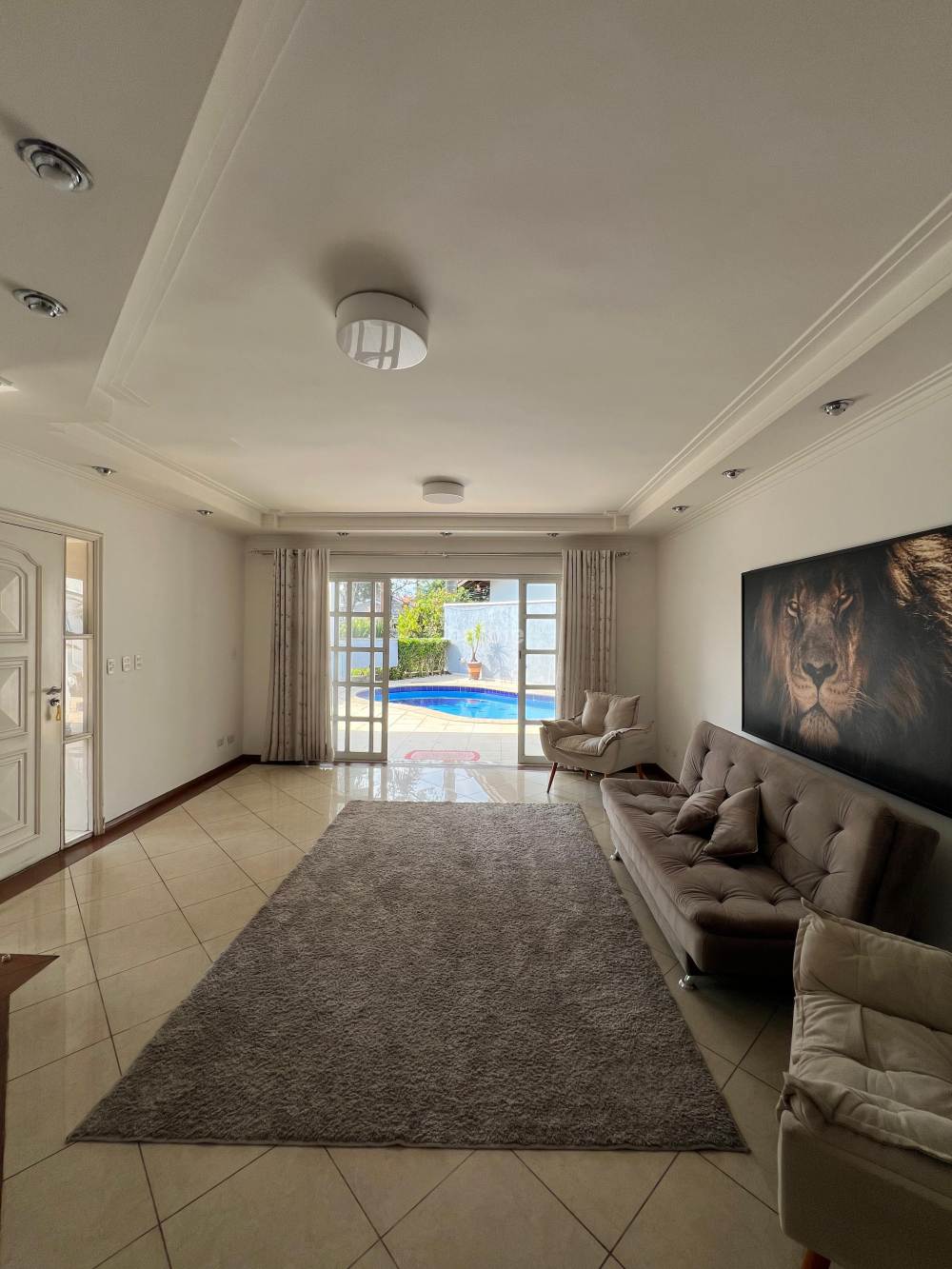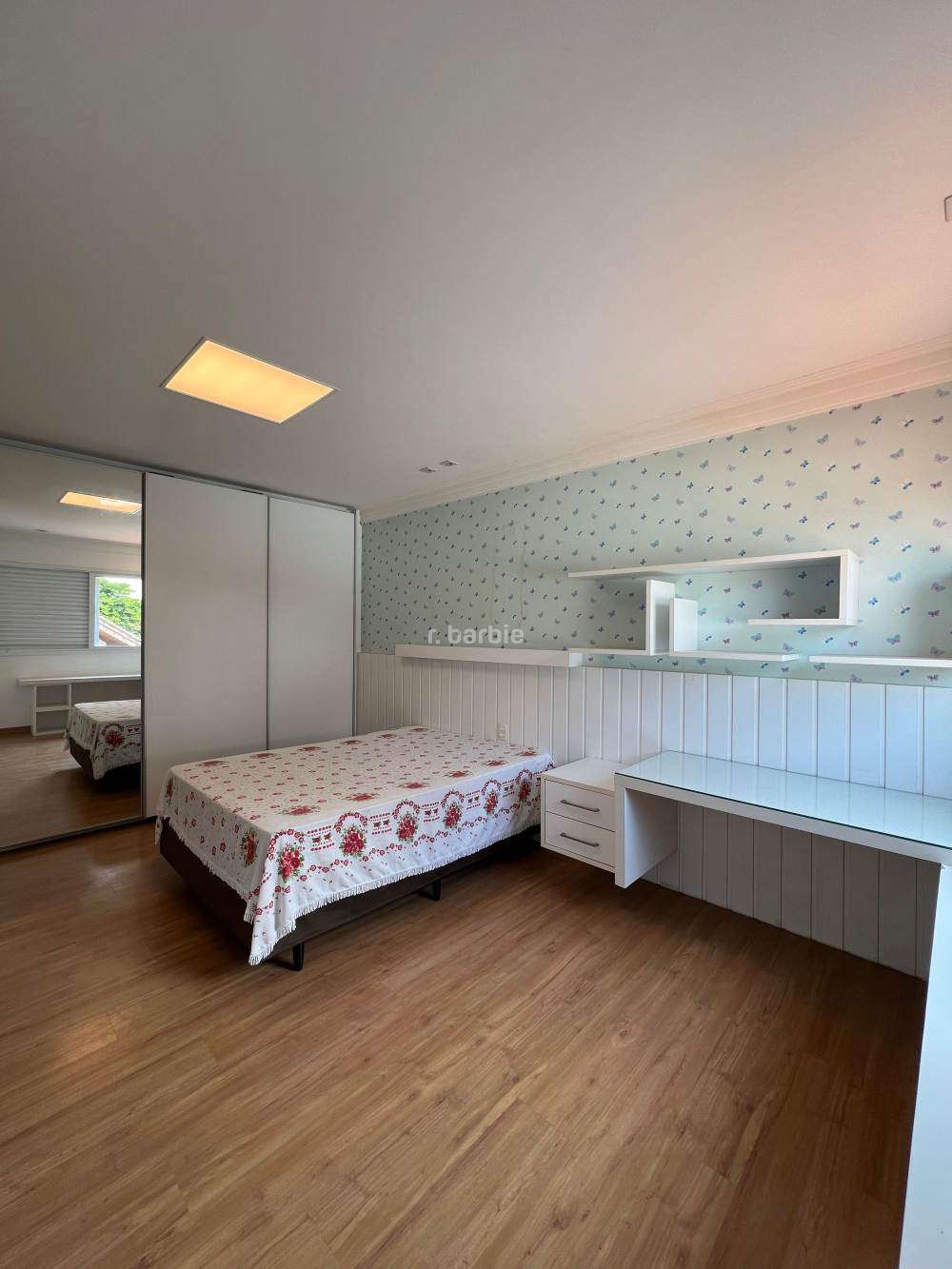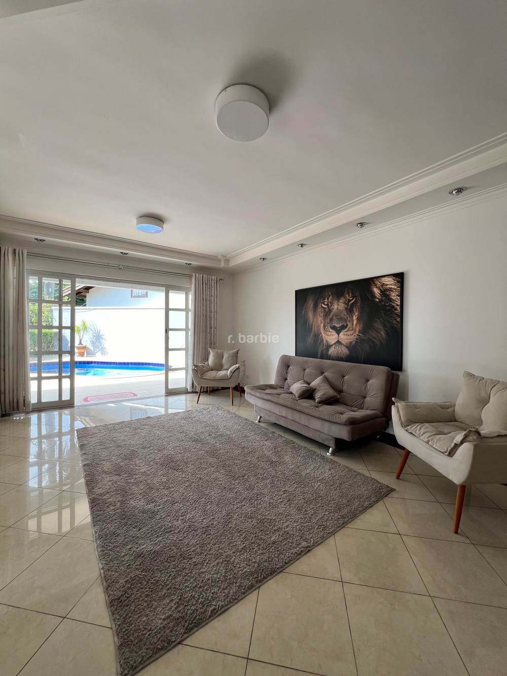 Casa mobiliada com 4 suítes em Alphaville, 559 metros de terreno e 354 metros de área construída, living para 3 ambientes, cozinha ampla com armários planejados e eletrodomésticos, dormitório pata prestador de serviço, 6 banheiros, churrasqueira, piscina e 4 vagas de garagem.