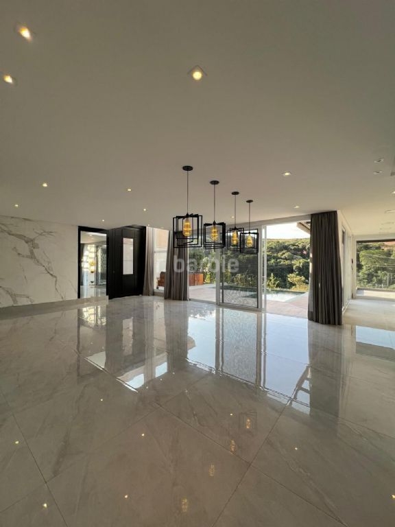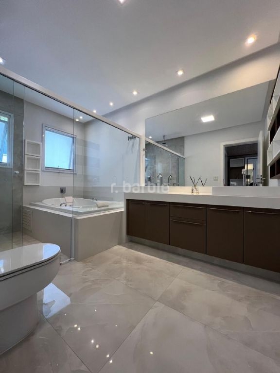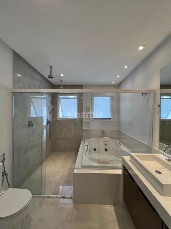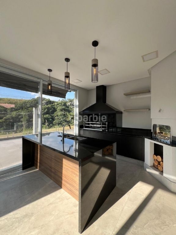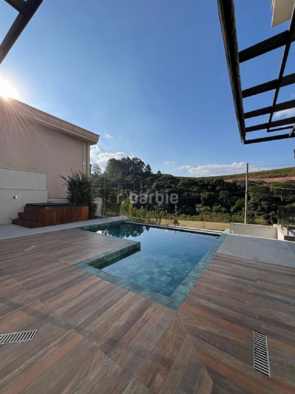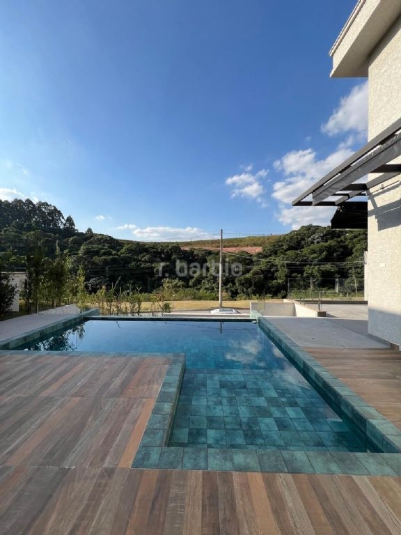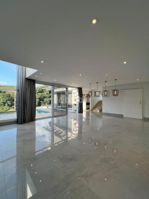 Excelente casa com 740 metros de terreno e 480 metros de área construída, 5 suítes sendo master com closet, ducha dupla e hidromassagem, living para 3 ambientes, cozinha ampla com armários, sala de cinema com teto estrelar, escritório, depósito, área gourmet com churrasqueira, piscina com borda infinita, jacuzzi, com linda vista e garagem para 6 carros.
