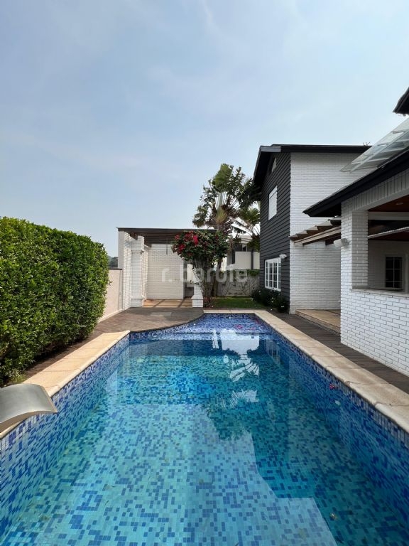 Casa em Alphaville com 525 metros de terreno e 480 metros de área construída, 5 suítes sendo master com sacada privativa e banheira de hidromassagem, living para 3 ambientes, escritório, ar condicionado em todos os ambientes, cozinha ampla com armários planejados, lavanderia, 7 banheiros, área gourmet com churrasqueira, piscina aquecida e 3 vagas de garagem cobertas.