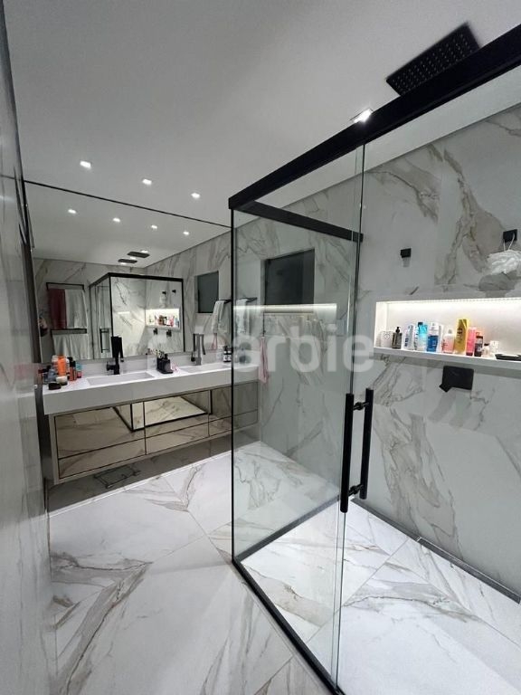 Excelente construção, com 2 casas, contendo no total 390 metros de área construída e 2778 metros de terreno, sendo casa principal com 6 suítes, sala de estar e cozinha recém reformadas, living para 2 ambientes com ar-condicionado, 2 despensas, escritório, brinquedoteca, 2 lavabos, lavanderia e canil, e a casa de hóspedes com 1 suíte com closet, cozinha americana, sala, lavabo, lavanderia completa, ótima vista para Alphaville e 4 vagas de garagem.