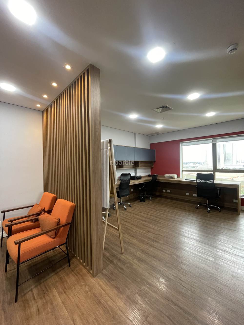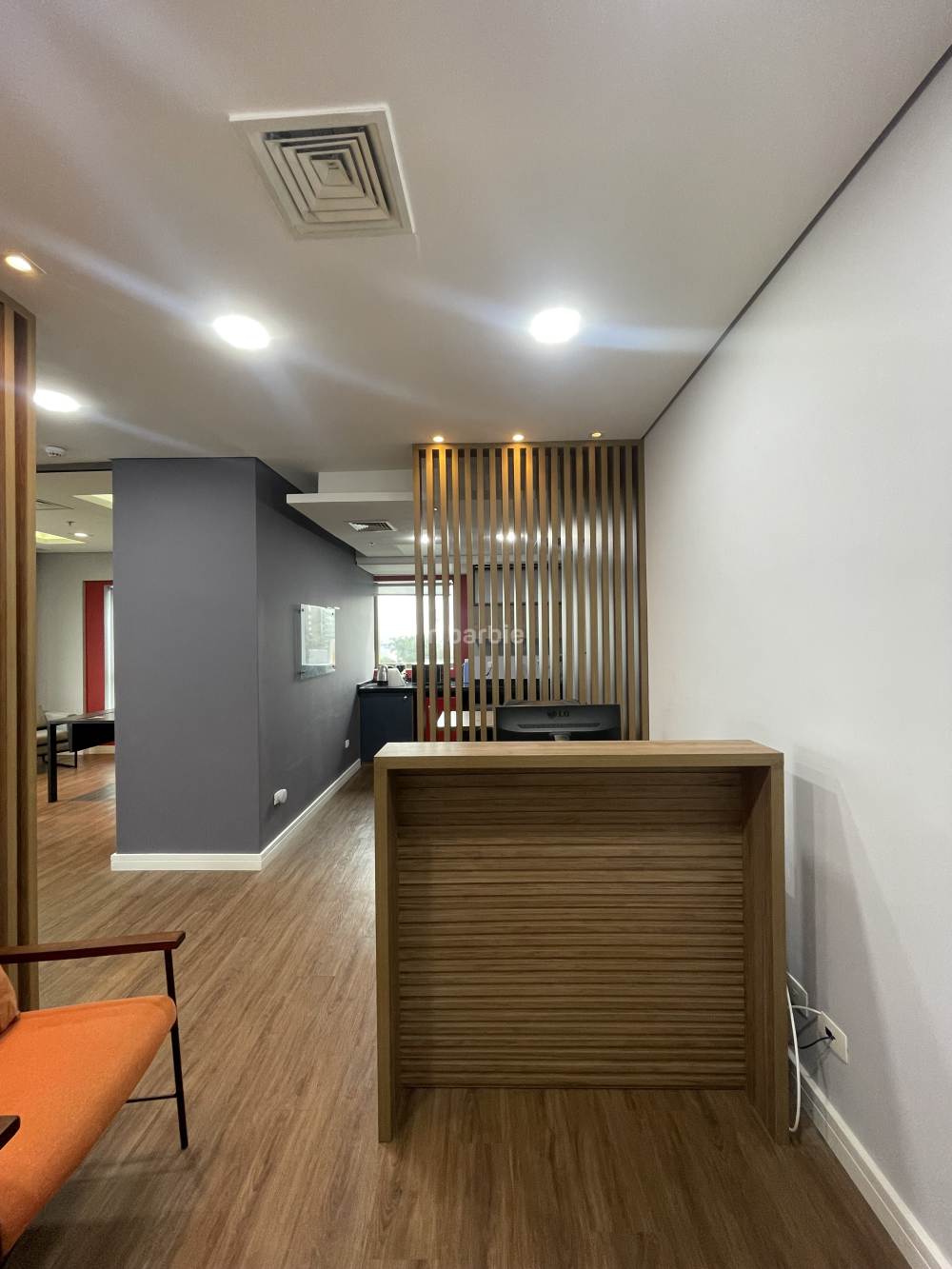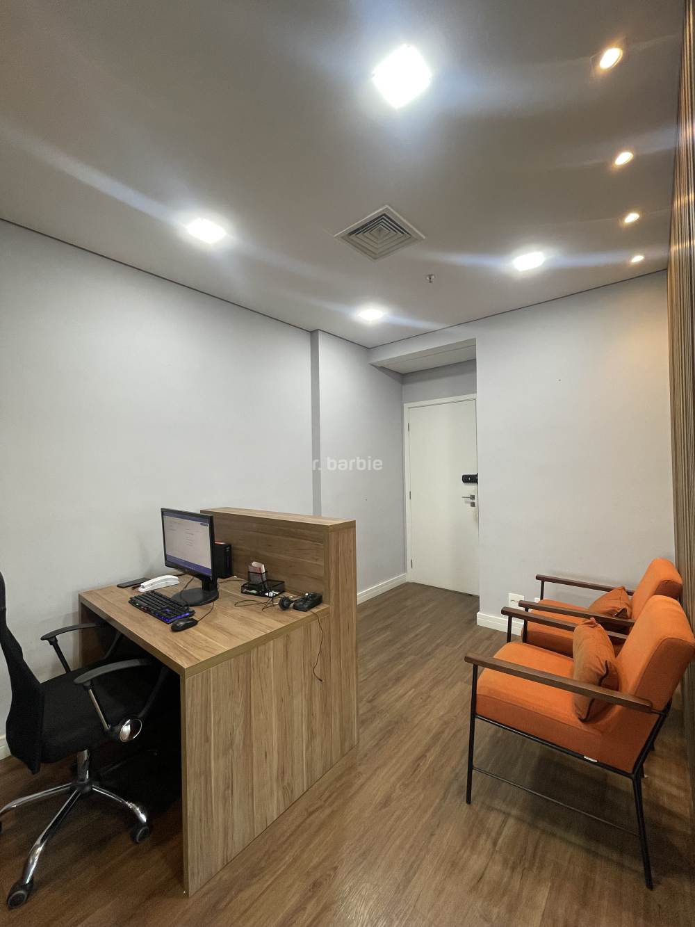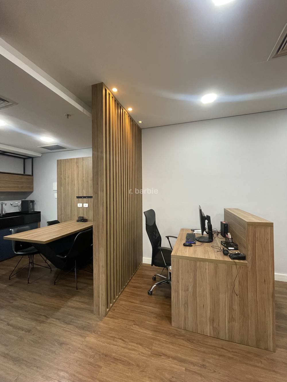 Sala comercial mobiliada em Alphaville, 55 metros com sala de reunião, estação de trabalho, recepção, copa e 1 vaga de garagem.