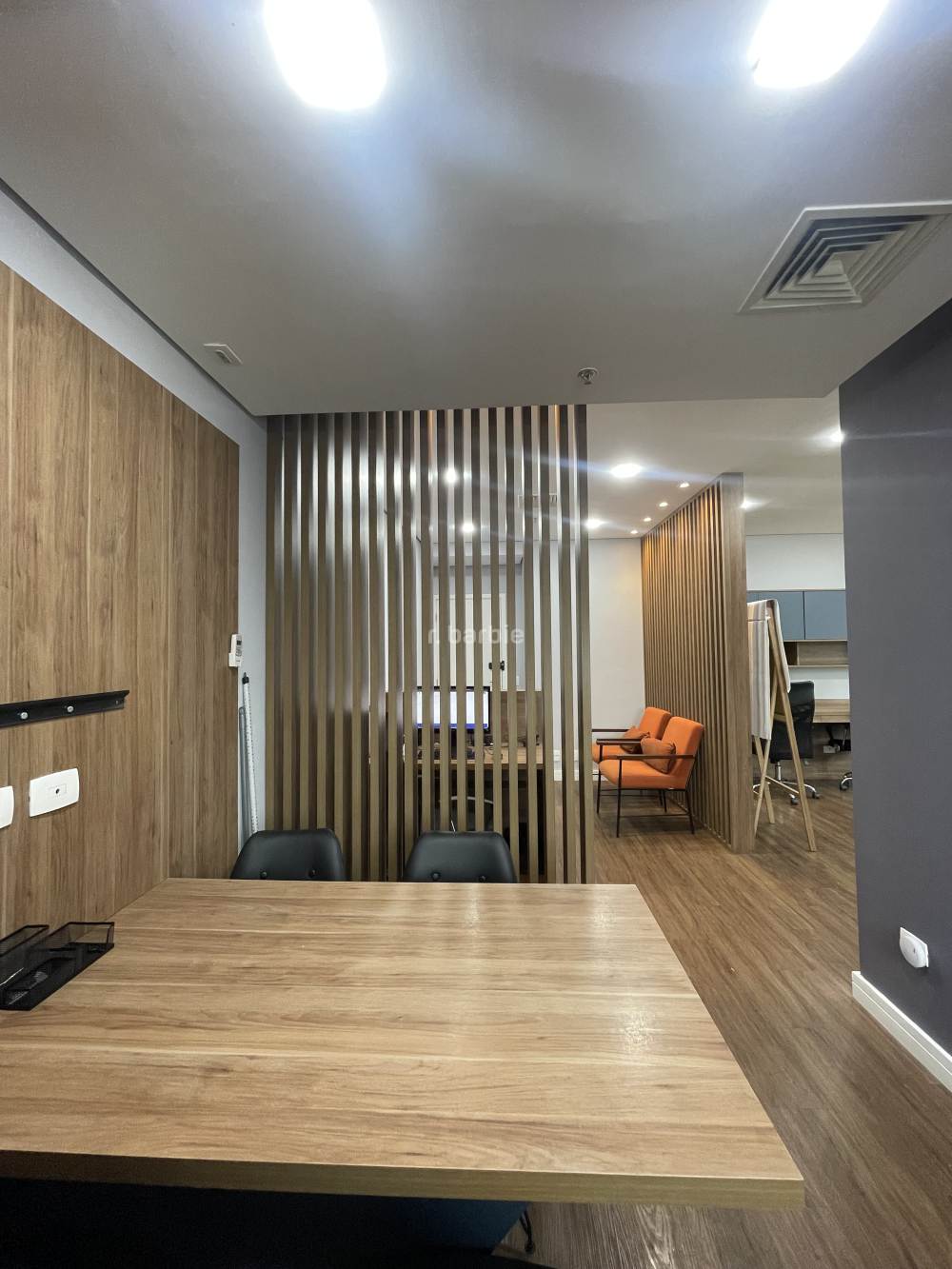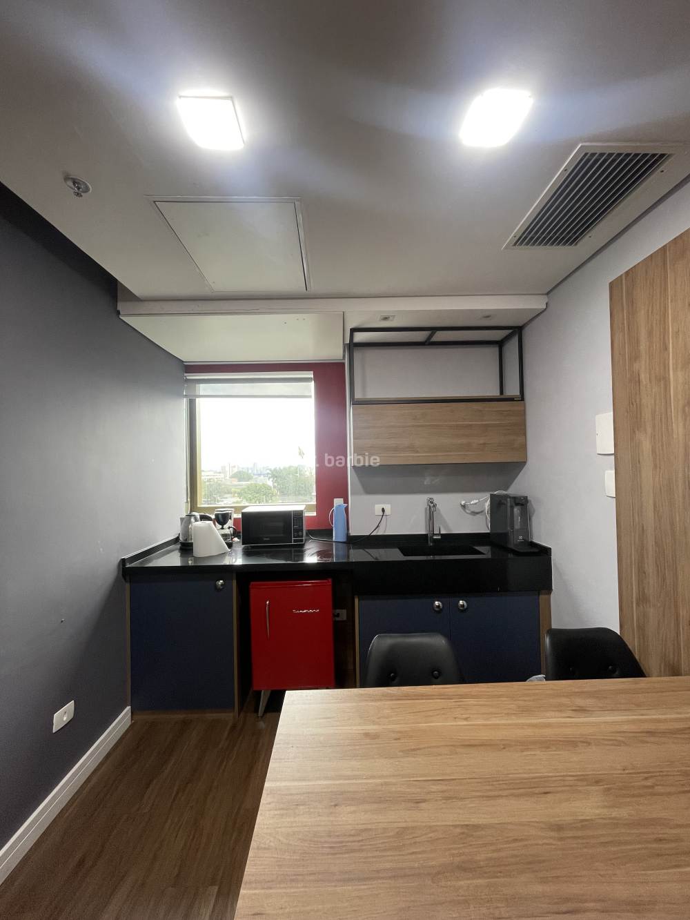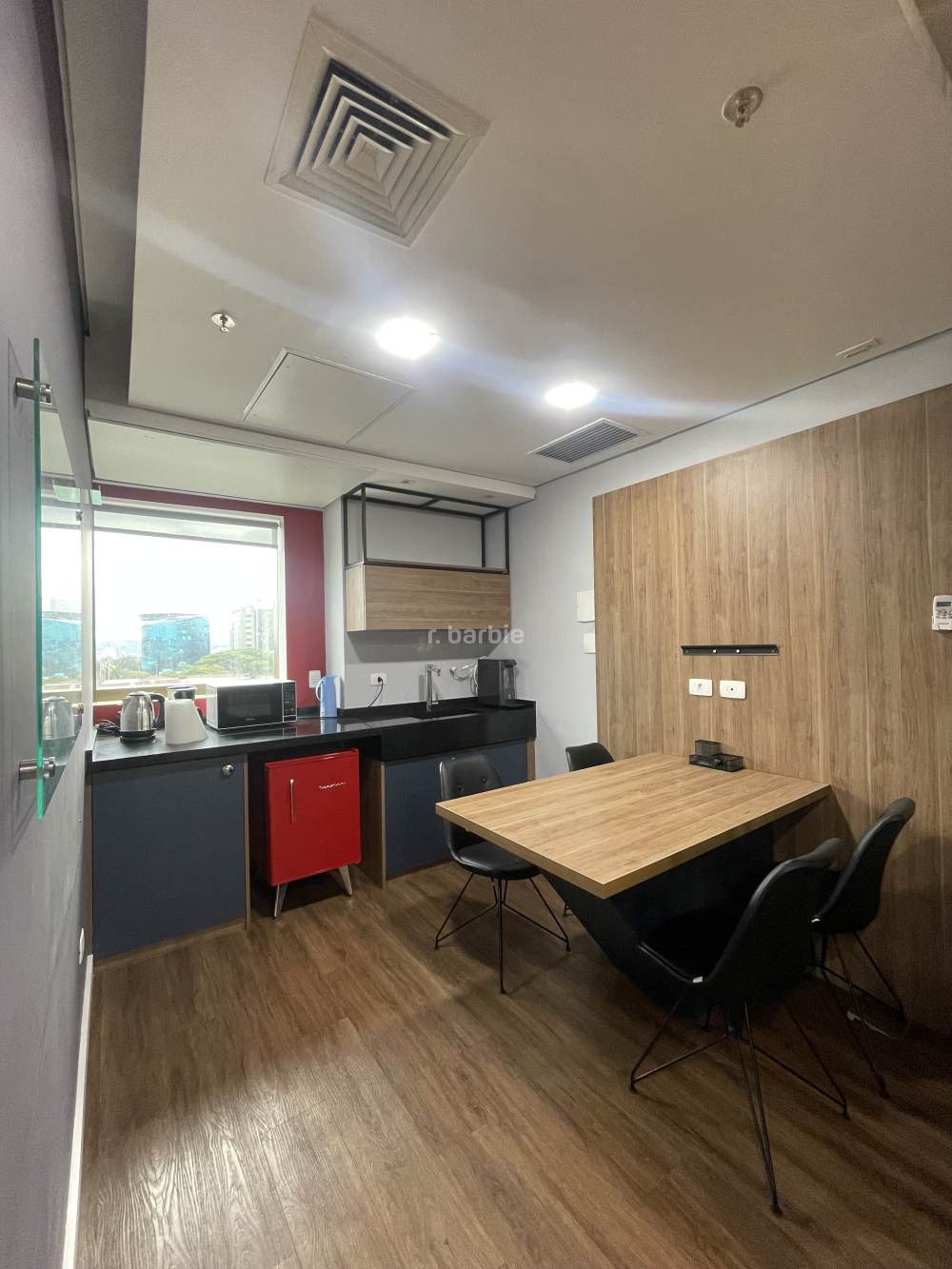 Sala comercial mobiliada em Alphaville, 55 metros com sala de reunião, estação de trabalho, recepção, copa e 1 vaga de garagem.