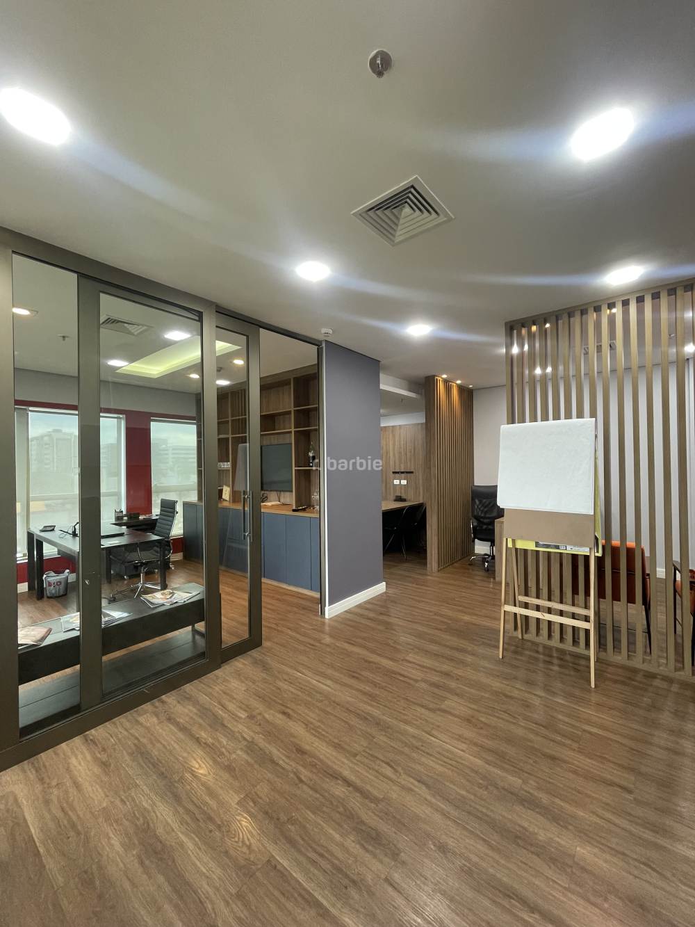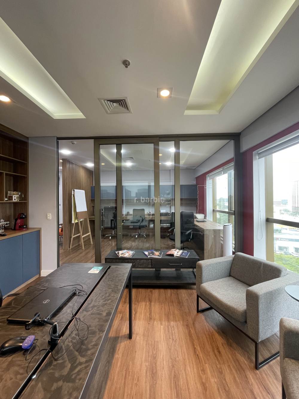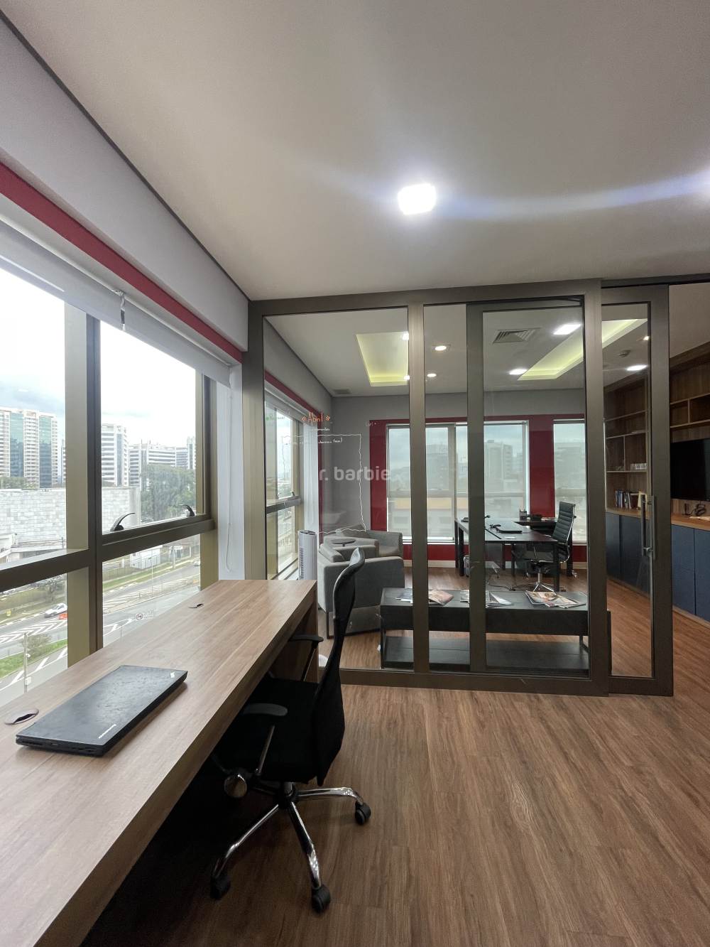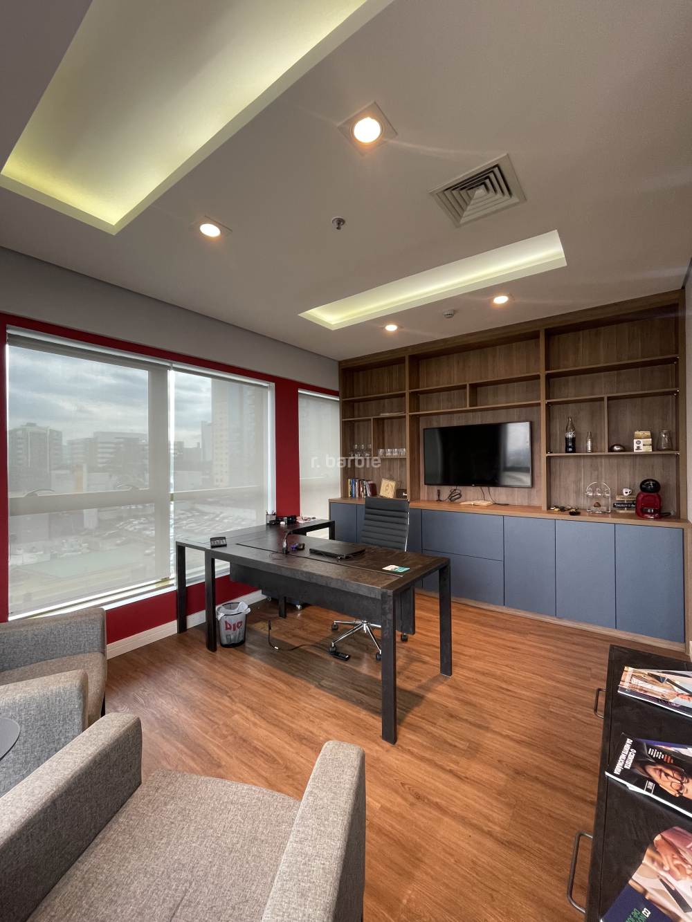 Sala comercial mobiliada em Alphaville, 55 metros com sala de reunião, estação de trabalho, recepção, copa e 1 vaga de garagem.