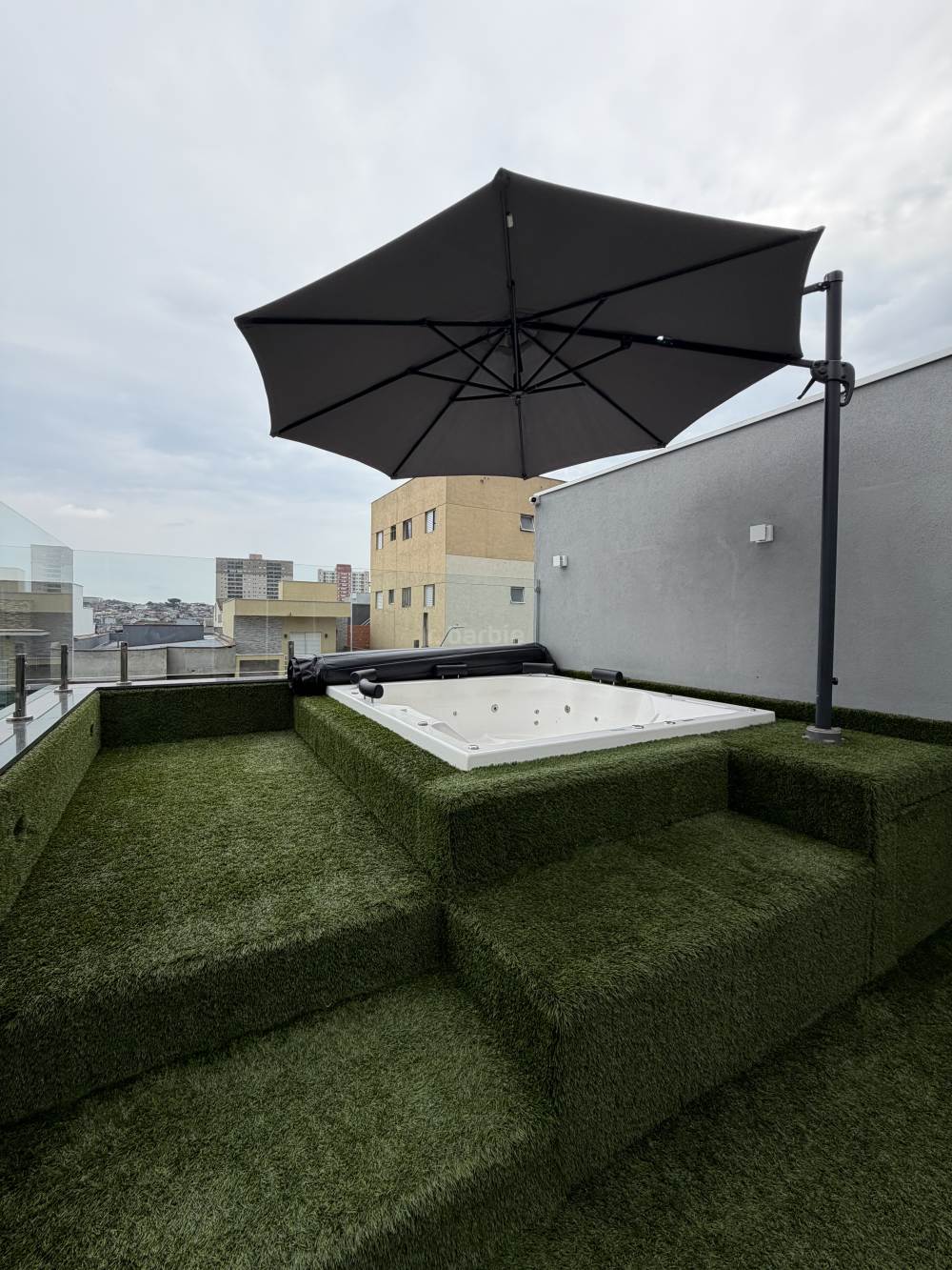 3º pavimento com SPA para 7 lugares com iluminação led e bomba de filtro, ombrelone articular (toda área externa com grama sintética) e sistema de ecoamento de água;
